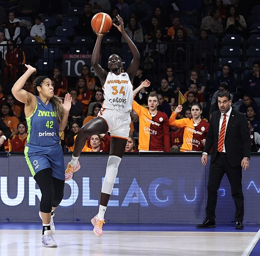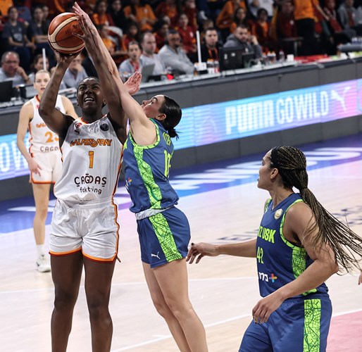 Galatasaray Çağdaş Faktoring müsabakaya Teja Oblak, Kamiah Smalls, Dorka Juhász, Marine Johannès ve Awak Kuier birinci beşiyle başladı. Ekibimizin birinci sayıları Dorka Juhász’ın hür atıştan kaydettiği isabetle geldi. Müsabakaya süratli başlayan taraf rakip takım oldu.